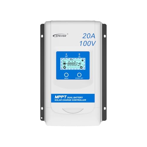 EPEVER® MPPT DuoRacer 20 A laddningsregulator, solcellsladdningsstyrenhet, DR2210N för 2 batterier, 12 V/24 V autowork, PV 100 V (DR2210N)