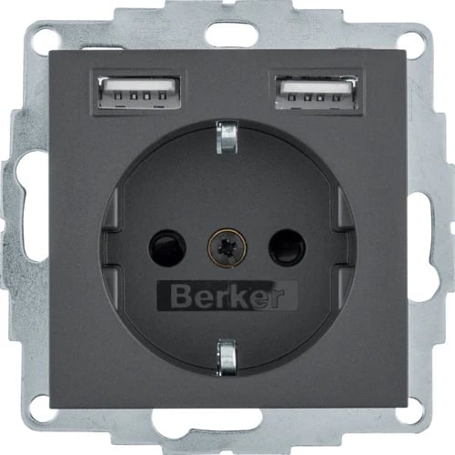 Hager S.1 1-vägsuttag 2xUSB-ladduttag Antracit