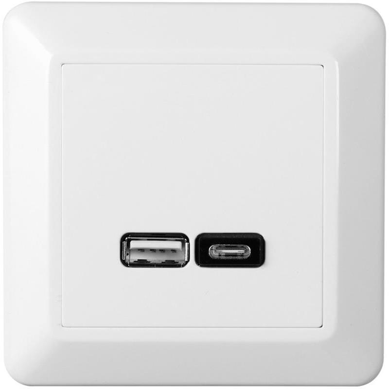 Elko RS Ladduttag USB A + USB C 2,4A Fjällvit