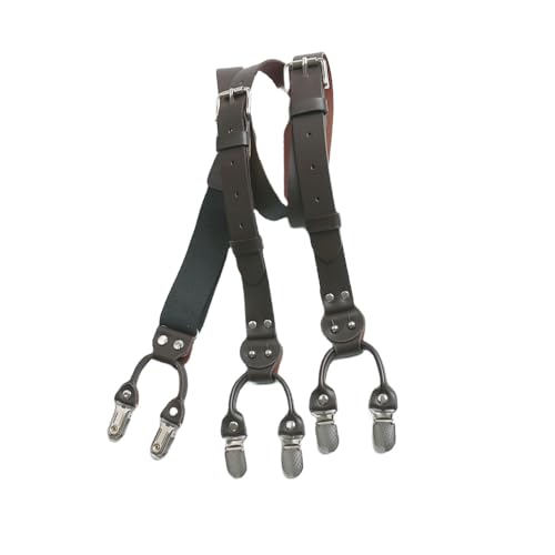 BaronHong Hängslen av äkta läder för män, avtagbara och justerbara, Y-rygghängslen för kostymbyxor, arbetsjeans, kaffe, M