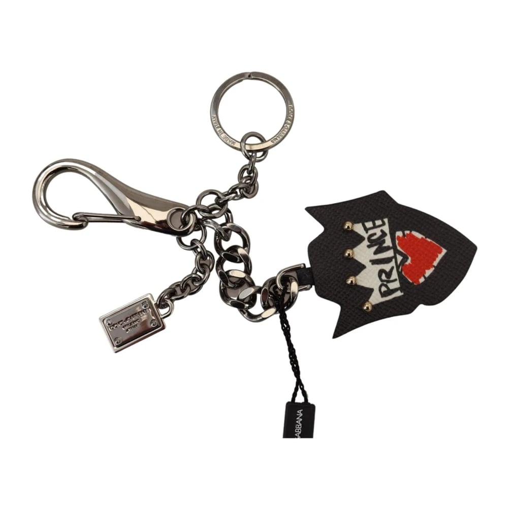 Dolce & Gabbana, Accessoarer , Herr, ONE Size, Läder, Logo Badge Nyckelring - Silver Svart