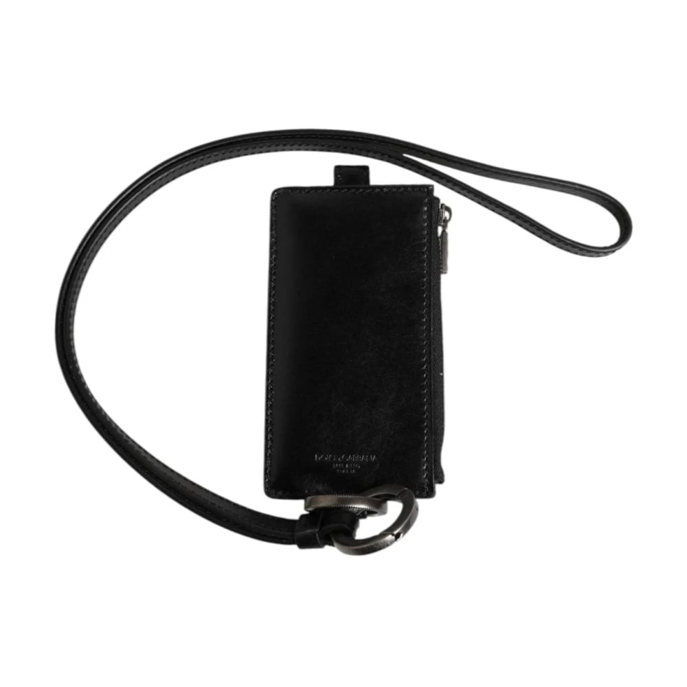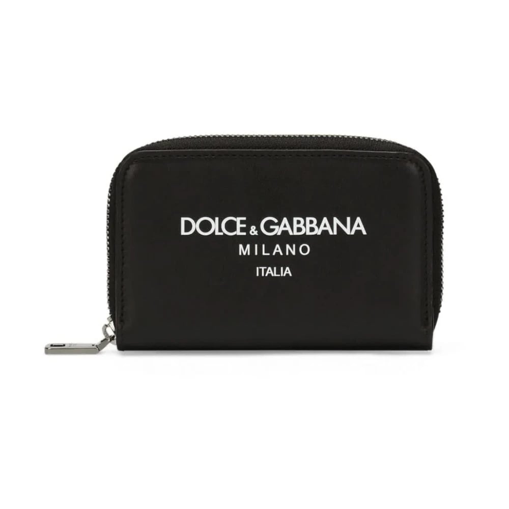Dolce & Gabbana, Accessoarer , Herr, ONE Size, Läder, Svart läder logotyp kortficka plånbok