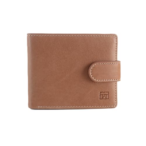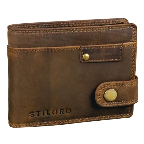 STILORD "Finley" läder plånbok för herr RFID och NFC-skydd med tryckknapp med skydd i tvärsnitt, Medelbrun, M, Plånbok