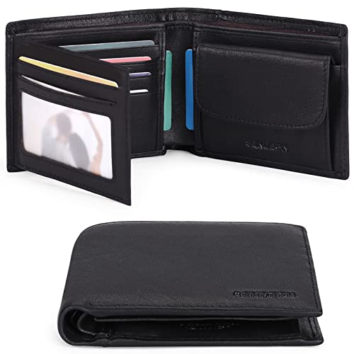HNOOM Herr läder RFID-blockerande plånbok herr plånbok med kedja liten plånbok för män och korthållare klassisk myntficka bladhållare presentförpackning, svart, S, Klassisk