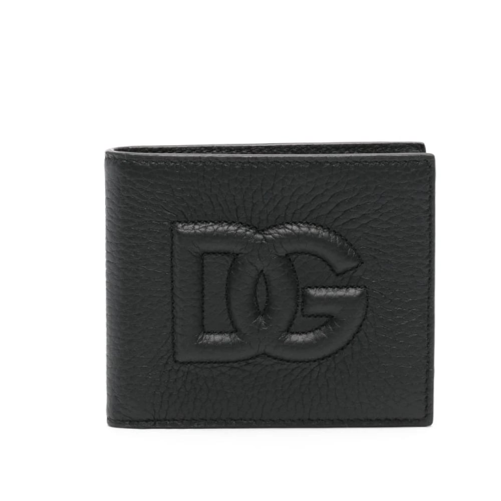 Dolce & Gabbana, Accessoarer , Herr, ONE Size, Läder, Hopfällbar Plånbok med Logopragling Svart Läder