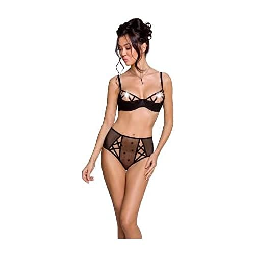 Erotiskt läder och latex underkläder för kvinnor varumärke PASSION WOMAN SETS PASSION LOVELIA SET BIKINI SVART L/XL
