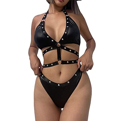 EVAbaby Sexig monokini dam mini baddräkt PU-läder one piece rygglös extrem micro bikini teddy underkläder slutty baddräkt, rosa, One size