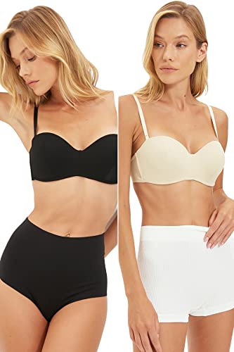 Trendyol Dam Underkläder Inga axelband Stickade BH Push-up, Svart läder, 36