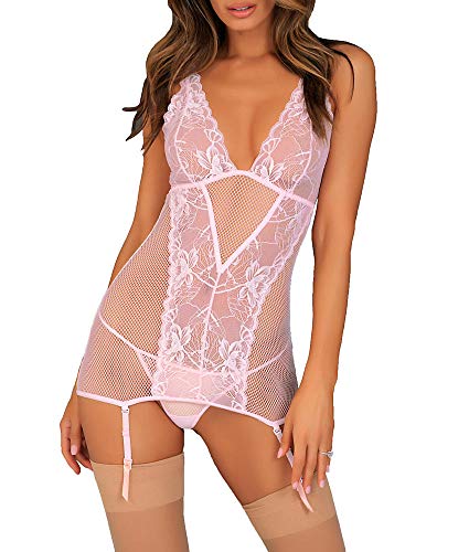 comeondear Babydoll, negligé med push up, sexig läderklänning, damer, kort, stora storlekar, spets/PU-läder, nattklänning, rygglös, underkläder, kurvig, miniklänning, v-ringad, nattkläder, set med