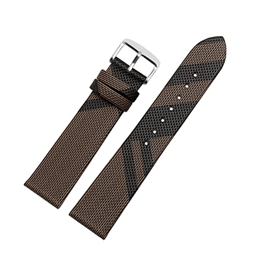 JUANZD Rutigt läderarmband med PU-mönster, 12 14 16 18 20 22 mm, svartbrunt armband, kompatibelt med BU19384 herr- och damklockakedja(Brown silverA,20mm)