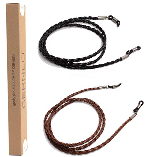 GERNEO® – Milano – flätat läderarmband – unisex PU-glasögonsnöre för solglasögon och läsglasögon – hållare antracitgrå, 1 x mytsvart och 1 x nougatbrun, One size