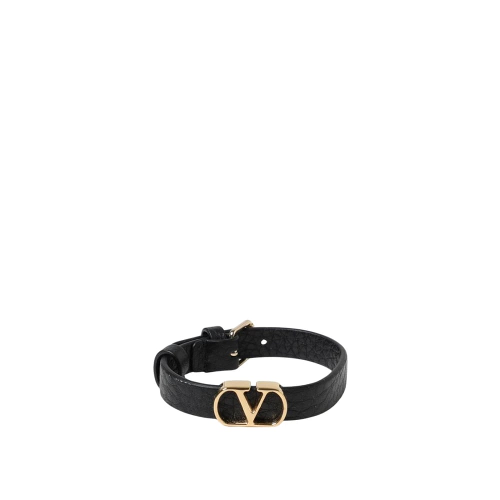 Valentino Garavani, Accessoarer , Herr, ONE Size, Läder, Logo Läderarmband Silverfärgat Spänne