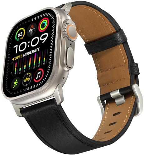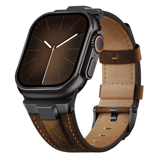 Suitisbest Läderarmband kompatibelt med Apple Watch Ultra 2 armband 49 mm 46 mm 45 mm 44 mm 42 mm, äkta läder, robust metallanslutning för iWatch Ultra 3 serie 11 10 9 8 7 6 5 4 3 Ultra SE 3 SE 2 SE