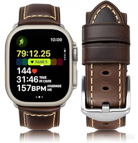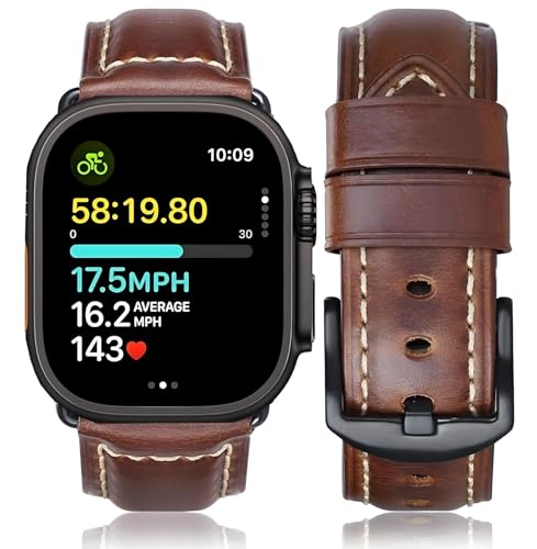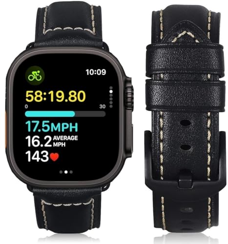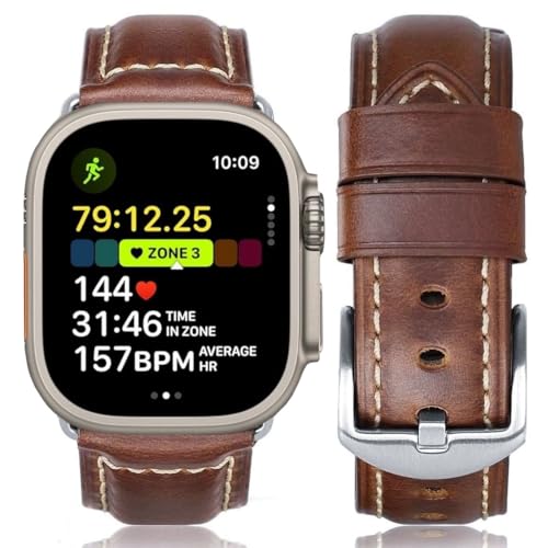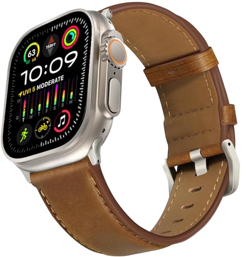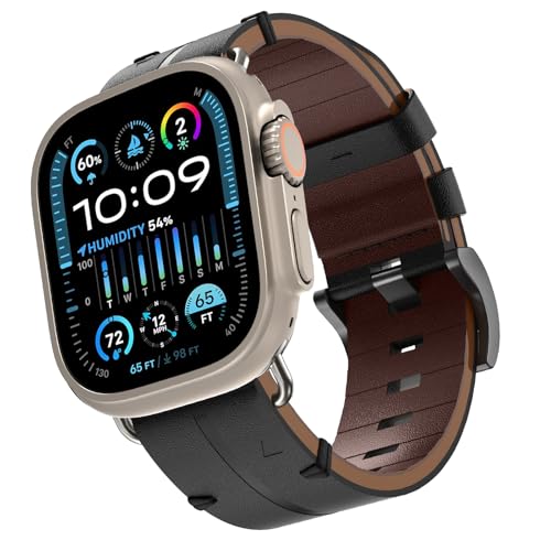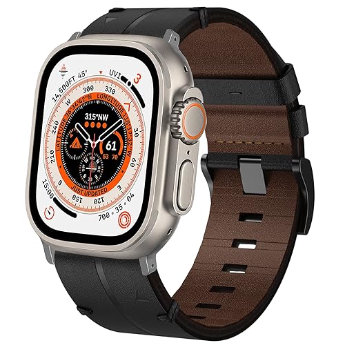 TOPsic Läderarmband Apple Watch Ultra 49 mm, mjukt äkta läder, ersättningsarmband för Apple Watch SE, iWatch Ultra 2 Ultra Series 9 8 7 6 5 4 3 2 1, kvinnor och män