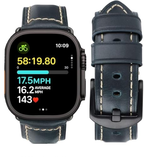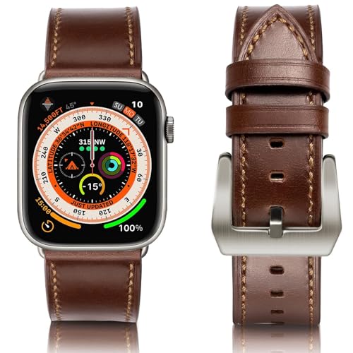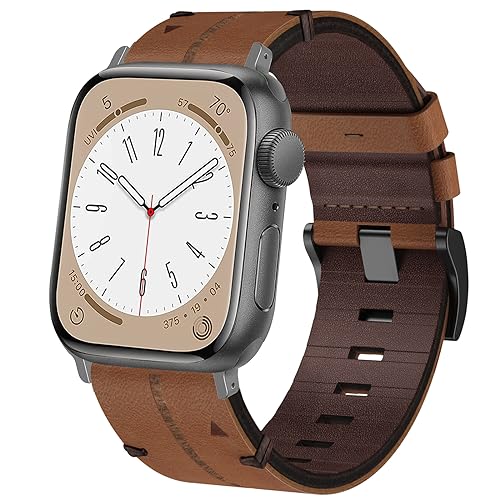 HUAFIY Läderarmband för Apple Watch armband 49 mm 45 mm/44mm/42mm, män kvinnor ersättningsband för iWatch Series 8/7 6 5 4 3 2 1, SE,Ultra