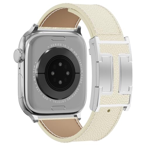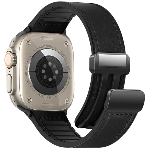 Wutwuk Kompatibel med Apple Watch-armband 38-49mm, D-format metallspänne, äkta läderarmband, ersättning för iWatch Serie 8, 7, 6, 5, 4, 3, 2, 1