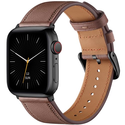 Wristitani Läderarmband kompatibelt med Apple Watch 49 mm 46 mm 45 mm 44 mm 42 mm, äkta läder hållbar metallkontakt, för iWatch Ultra Series 10 9 8 7 SE 6 5 4 3, Mörkbrun + svart hårdvara, 44/45/46/49