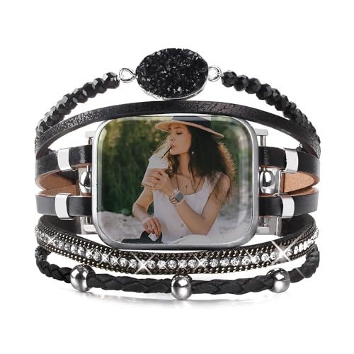 CHARMINGO Boho-läderarmband kompatibelt med Apple Watch-band för kvinnor och män 38 mm 40 mm 41 mm 42 mm 44 mm 45 mm 49 mm – flerskikts omlott Apple Watch-rem för gulligt Iwatch Band serie 9 8 7 6 SE,
