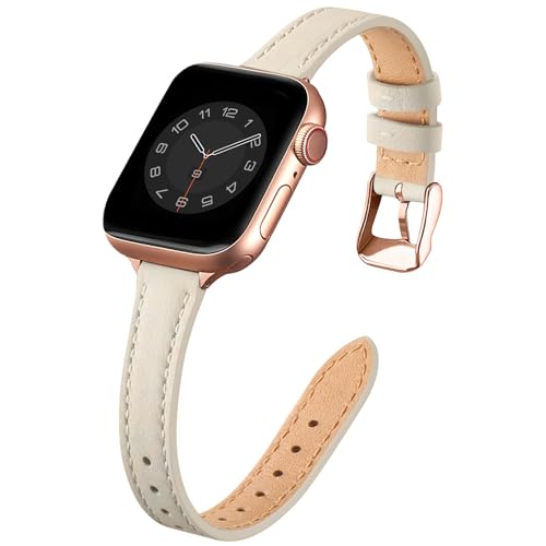 SUNFWR Rem kompatibel med Apple Watch 38 mm 40 mm 41 mm, fint och tunt läderarmband för iWatch serie 7/6/5/4/3/2/1, SE (38 mm, 40 mm, 41 mm, ljusvitt och roséguld)