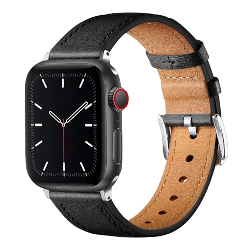 A-One Brand Läderarmband kompatibelt med Apple Watch 4/5/6/7/SE 42/44mm Svart