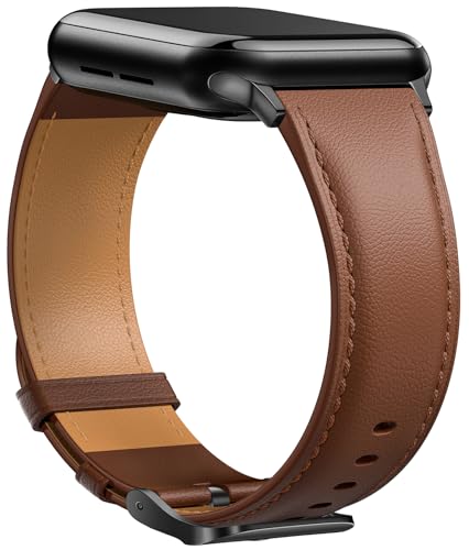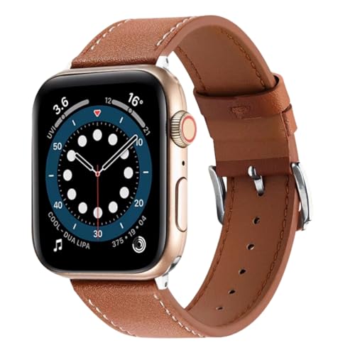 Laffav Läderarmband kompatibelt med Apple Watch armband 40 mm 41 mm 38 mm kvinnor och män, äkta läder, klassiskt ersättningsarmband för Apple Watch iWatch Series 8 7 6 5 4 3 2 1 SE, brunt