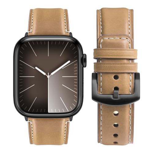 BINLUN Läderarmband kompatibelt med Apple Watch 38mm 40mm 41mm 42mm 44mm 45mm 46mm 49mm Vintage Läderarmband kompatibelt med iWatch Series 11 10 9 8 7 6 5 4 3 2 1 Ultra3/2/1 SE3/2/1 SE3/2/1, Ljusbrun