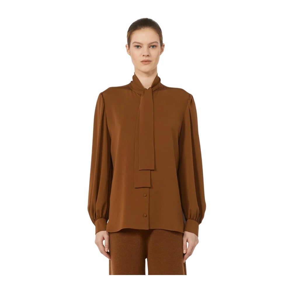 Max Mara, Blusar & Skjortor , Dam, S, Läder, Sidenskjorta i läderfärg