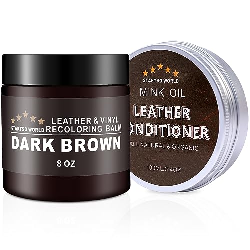 Återfärgningsbalsam i läder med mink olja läderbalsam, läderreparationssats för soffor, mörkbrunt läderfärg för möbler, bilstol, soffa, skor, vinyl