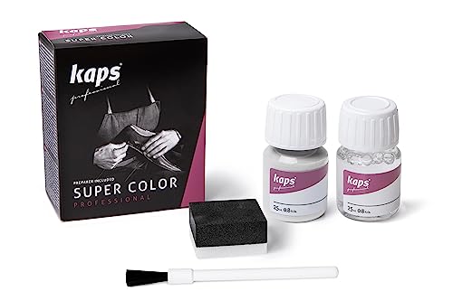 Kaps Dye Super Color + Preparera (25 ml vardera), Professionell läderfärg för Naturläder, Konstläder och Tyg, För näring och Reparation av Läderskor i Olika Färger (101 - Vit)