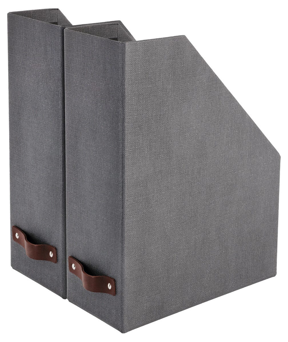 Clas Ohlson Tidskriftssamlare med läderhandtag 2-pack, mörkgrå, extra bred
