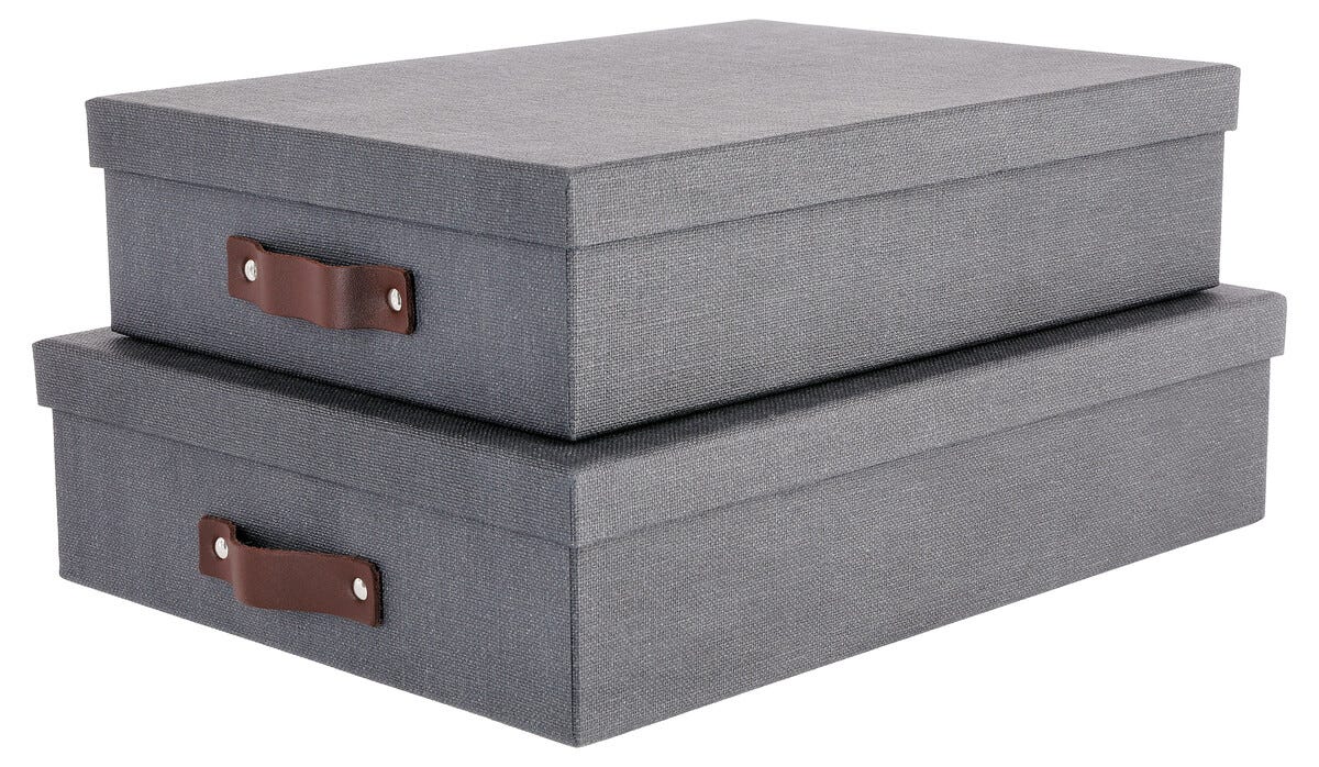 Clas Ohlson Förvaringsbox med läderhandtag 2-pack, mörkgrå