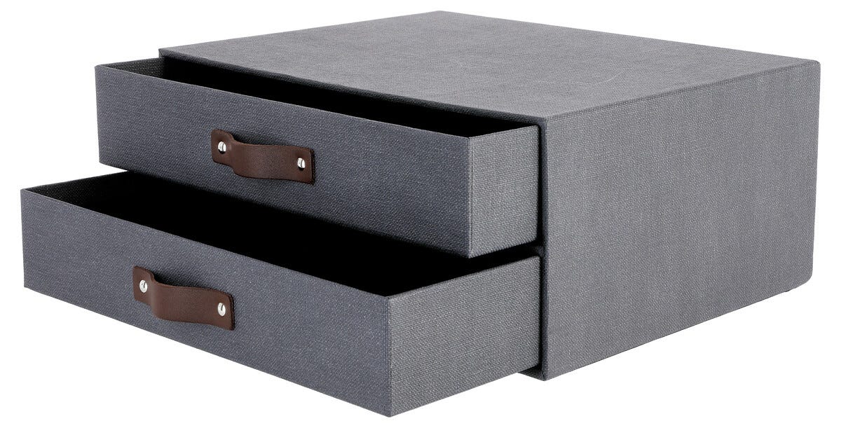Clas Ohlson Lådförvaring med 2 lådor och läderhandtag, mörkgrå