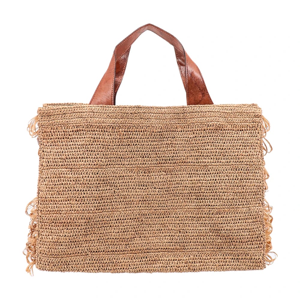 Ibeliv, Väskor , Dam, ONE Size, Läder, Rafia Handväska med Läderhandtag