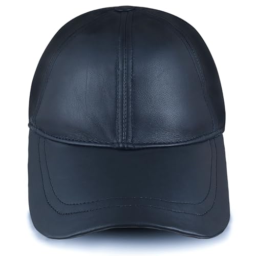 URBAN 5884 läderhatt – herr-damer äkta läderhatt med visir, mjuk lädermössa, unisex, svart, svart, 50-65