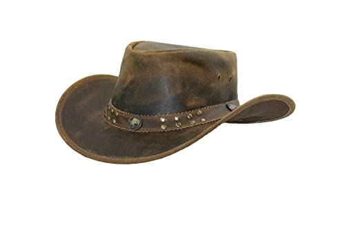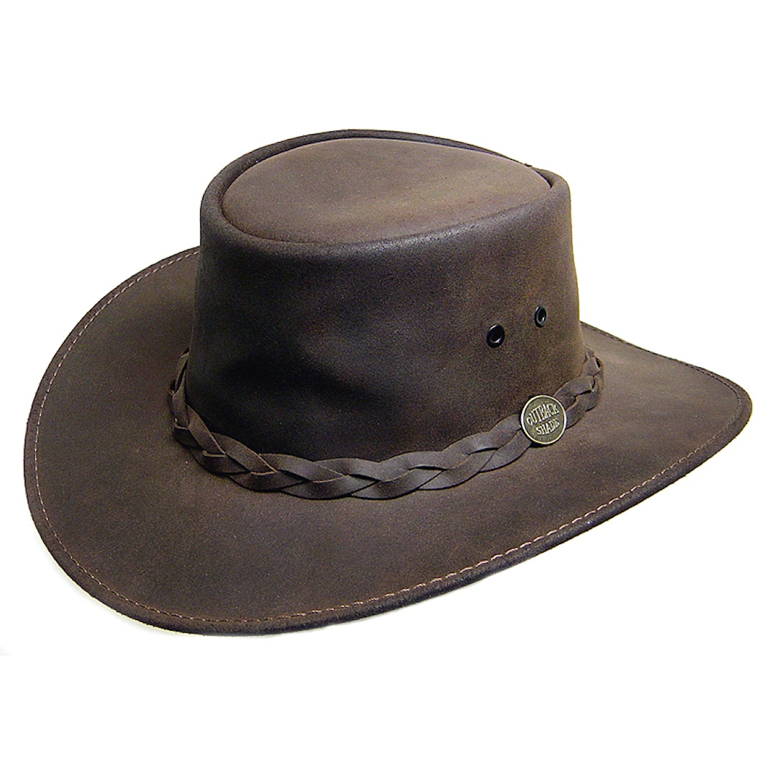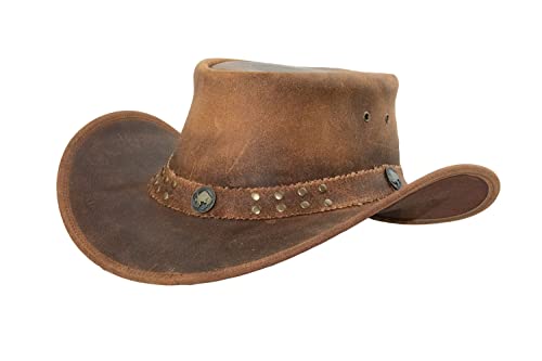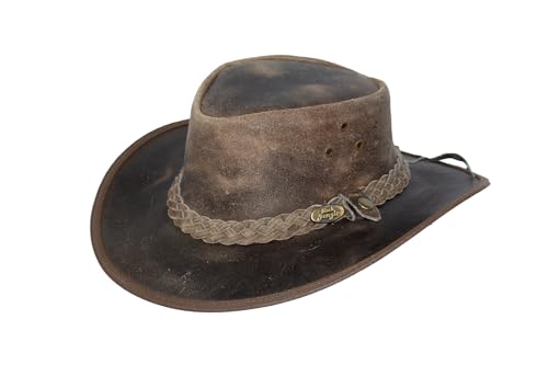 Barmah Squashy Outback västerländsk hatt läderhatt Stockman med läderrem, BRUN, 58/59 cm