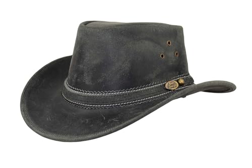 Black Jungle Kimbolton läderhatt, västerländsk hatt, australienhatt, cowboyhatt, BRUN, XL
