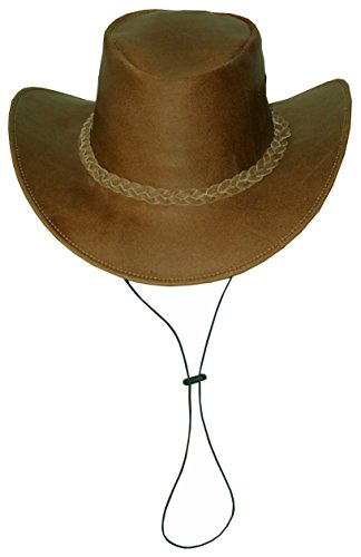 Leatherick Cowboyhatt - Brun dubbad och flätad Crazy Horse-läderhatt i västra australiensisk stil med hakrem (L, brun med dubb)