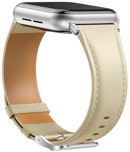 Laffav Läderrem kompatibel med Apple Watch-rem 40 mm 38 mm 41 mm kvinnor män, äkta läder klassiska ersättningsband för Apple Watch iWatch serie 10 9 8 7 6 5 4 3 2 1 SE 2, beige