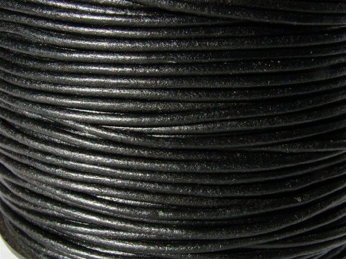 Esnado läderband, lädersnöre, läderrem 10 m. Rund 2,0 mm. Svart