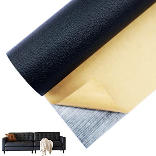 Vicloon konstläder självhäftande, läder reparationslapp svart 160 x 34 cm, slitstark och reptålig läderlapp för soffa bilstol soffa möbler läderreparation, läder renovering