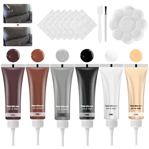 JIANGZHIB läderreparationssats, 6 färger läderreparation kräm, konstläder reparationsset med tjocka handskar, svamp och handduk, läderreparationsset för bilsäten, soffa, läderjacka, skor
