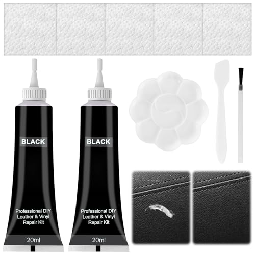 HASAIKA läderreparation kräm, konstläder reparationssats, läder restaurator, reparationsset för bilstolar, soffor, läderjacka, skor, bälte repor, hål, (svart + vit)