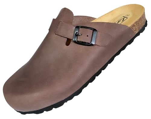 GONKOS®, läderskor med innersula i kork, äkta läder, naturkork, justerbart spänne vid foten, sandaler för herr/dam, kvalitetssandaler, Tillverkad i Spanien, färg brun, storlek 45