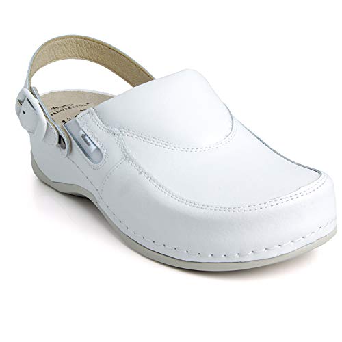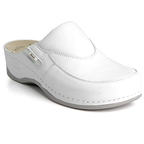 LEDI 404-18 Anatomic Läderskor Sandaler Träskor Clogs Tofflor Pantoletter Komfortskor, Kvinnor, Vit, EU 41