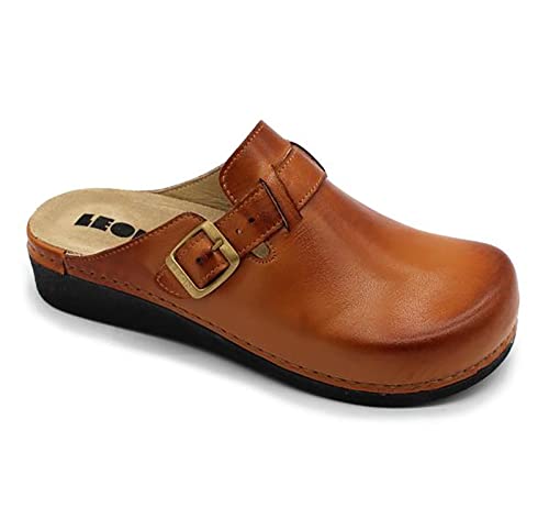 LEON 953 Läderskor Träskor Clogs Tofflor Pantoletter Komfortskor, Kvinnor, Brun, EU 39