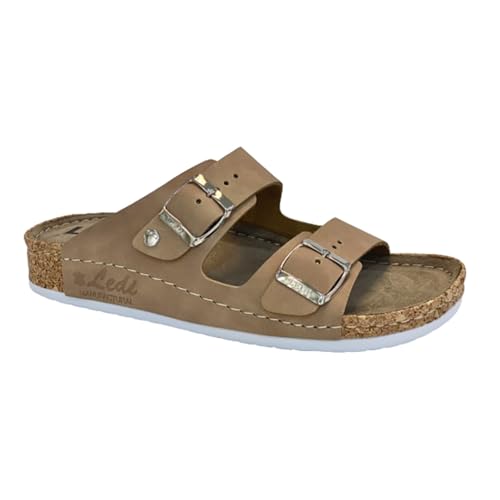 LEDI Anatomic 92-NB5 Läderskor Sandaler Träskor Clogs Tofflor Pantoletter Komfortskor, Kvinnor, Beige, EU 38