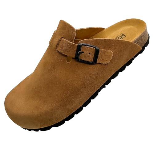 GONKOS®, läderskor med innersula i kork, äkta läder, naturkork, justerbart spänne vid foten, sandaler för herr/dam, kvalitetssandaler, Tillverkad i Spanien, färg muskat, storlek 42
