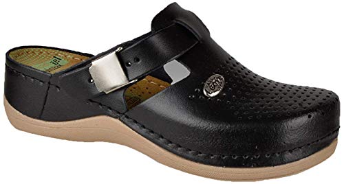 LEON 953 Läderskor Träskor Clogs Tofflor Pantoletter Komfortskor, Kvinnor, Svart, EU 40