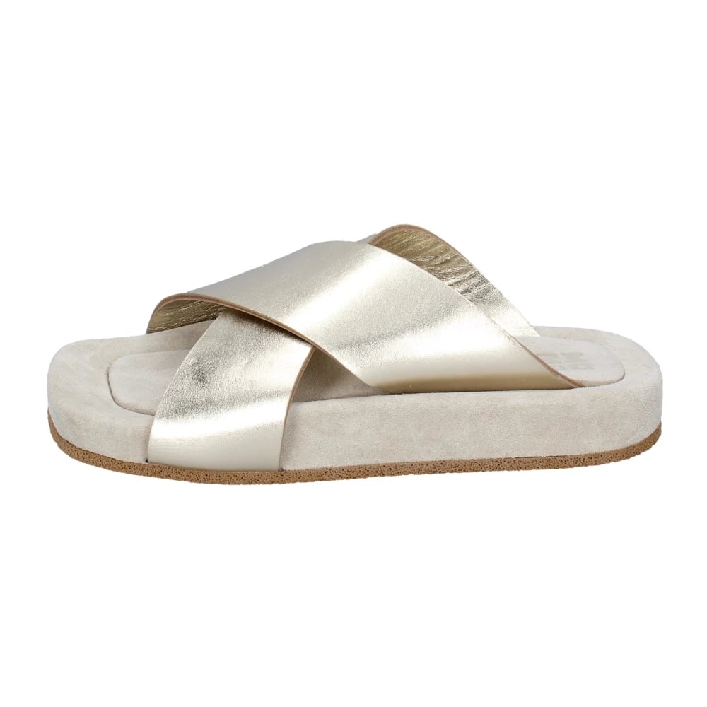 Forte Forte, Skor , Dam, 38 EU, Läder, Shearling- och lädertofflor med korsade remmar