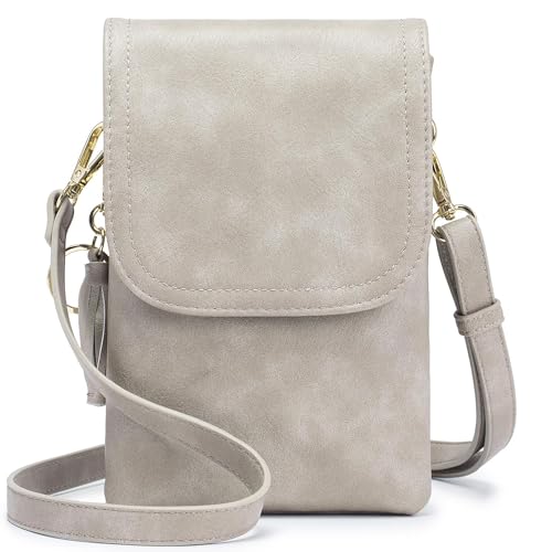 Roulens liten mobiltelefon axelväska damer, mobiltelefonväska med plånbok att hänga, PU-läderväska dam för kvinnor designer, justerbar rem och nyckelring, Beige grå